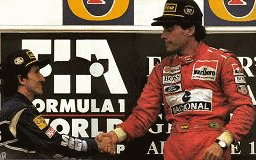 | (Senna, com roupa vermelha, e Prost) |